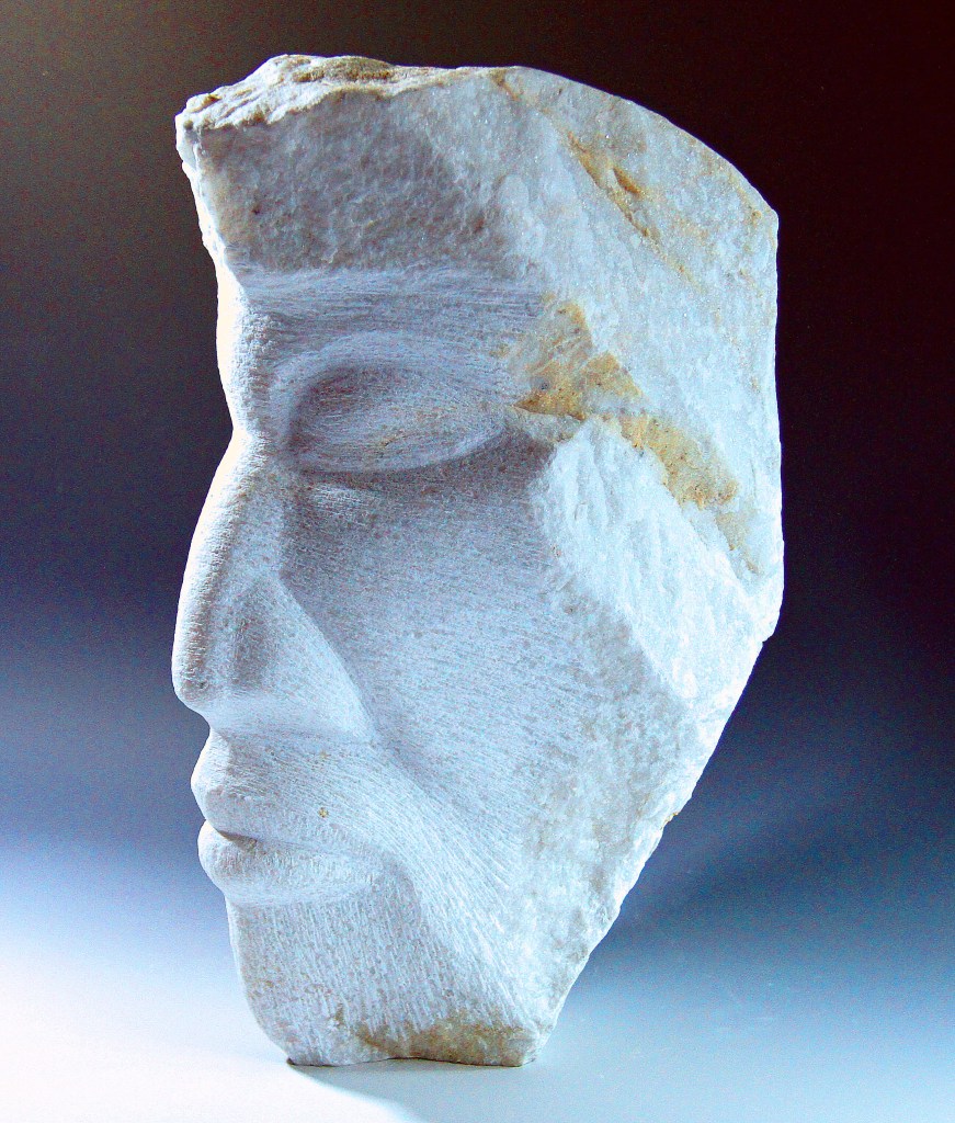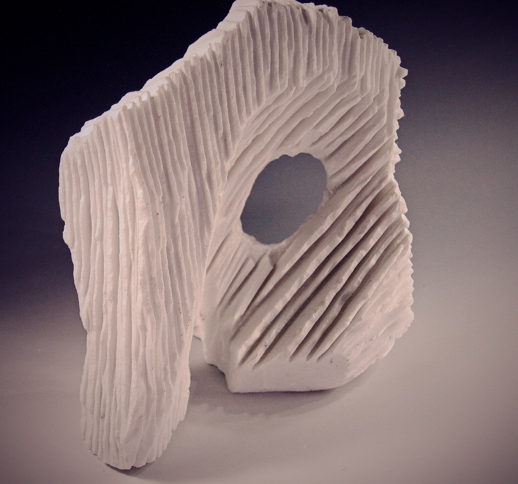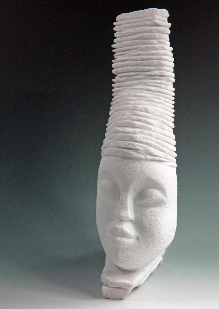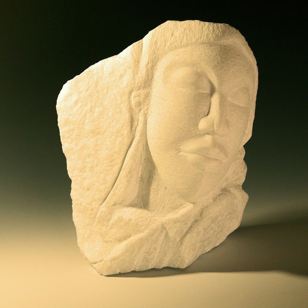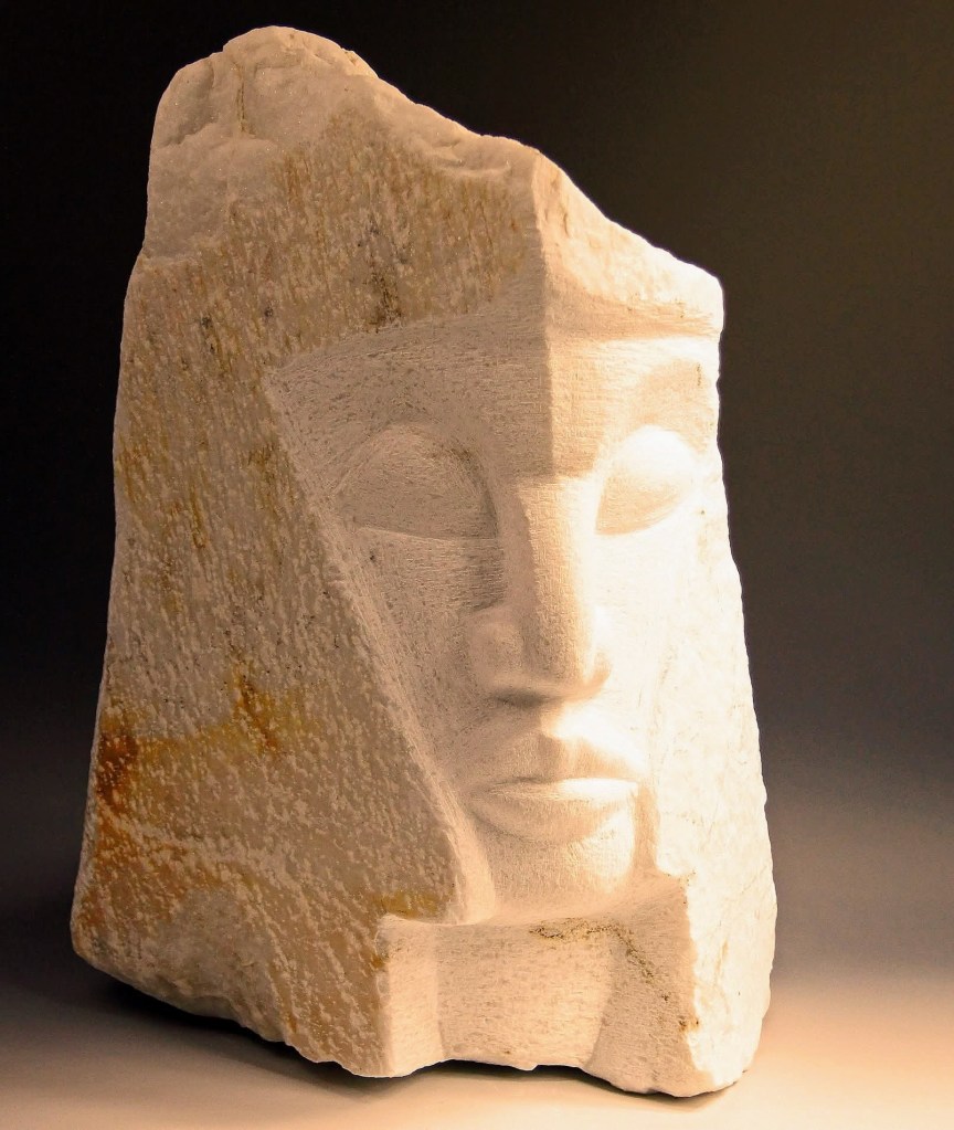 I began sculpting stone when I moved to the desert and could not find quality wood. I fell in love. When I set out to work on a piece, I do not know where it will take me. The stone in my hands speaks to me, I am patient with it and it becomes.